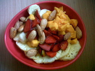 Well, now that I’m really deep into training, I’m realizing that I have to eat more…a LOT more. Exercising for 4 hours a day burns through a ton of calories, and if I don’t want to lose any of the muscle it’s taken me the last two years to put on, then I’m simply going to have to eat more. So, again I talked things over with my coach, and he agreed, that I should stop carb-cycling for now as fat-loss is not a priority, and just try having the same amount of carbs every day, about 100 grams. Yesterday I had a cup of grapes, 1/2 cup strawberries, 2 bananas, 2 ripe figs, mashed potatoes, some noodles, and vegetables of course. Today I woke up to a big bowl of sweet, ruby strawberries drizzled in honey with some toasted cashews, and I’ll figure out a way to get in some more fruit throughout the day. That’s one great thing about my training: getting to eat all the fruit I want. And with Alphonso mango season coming up next month, it’s going to be a great reward!!!!